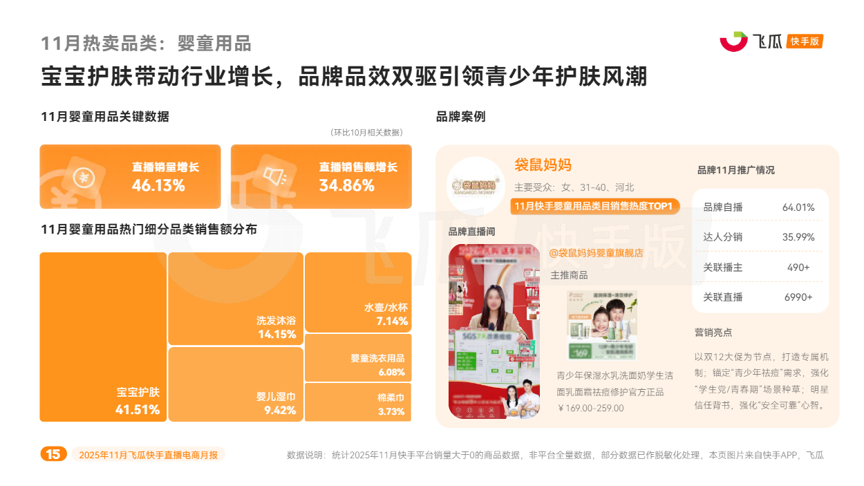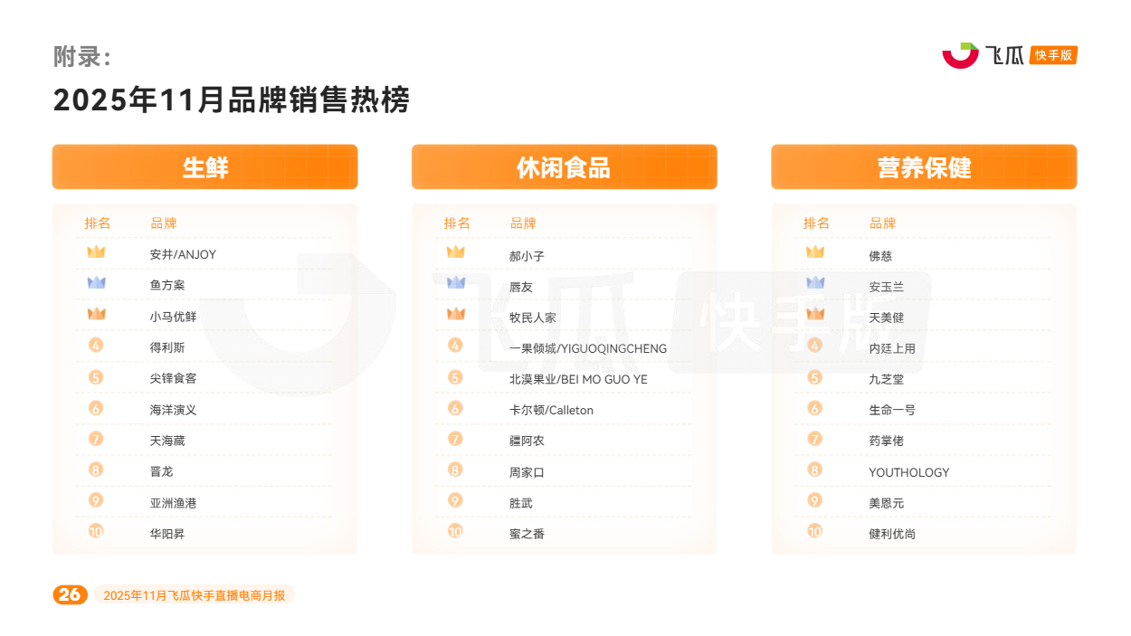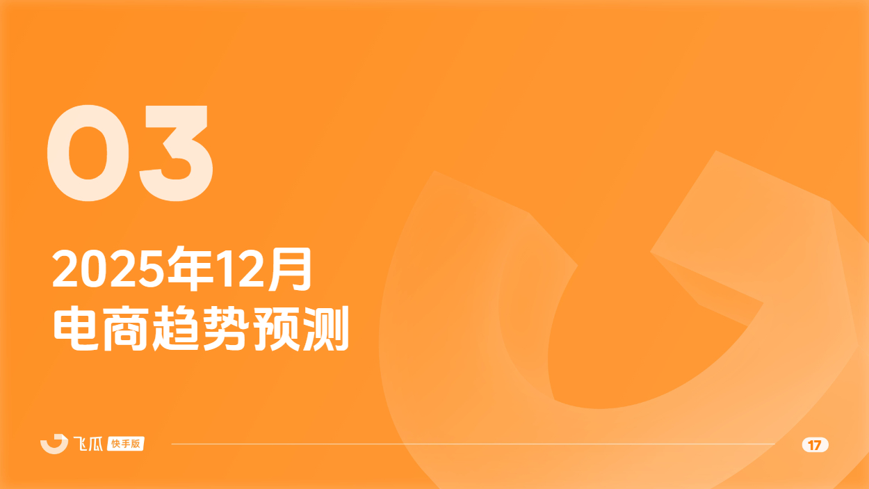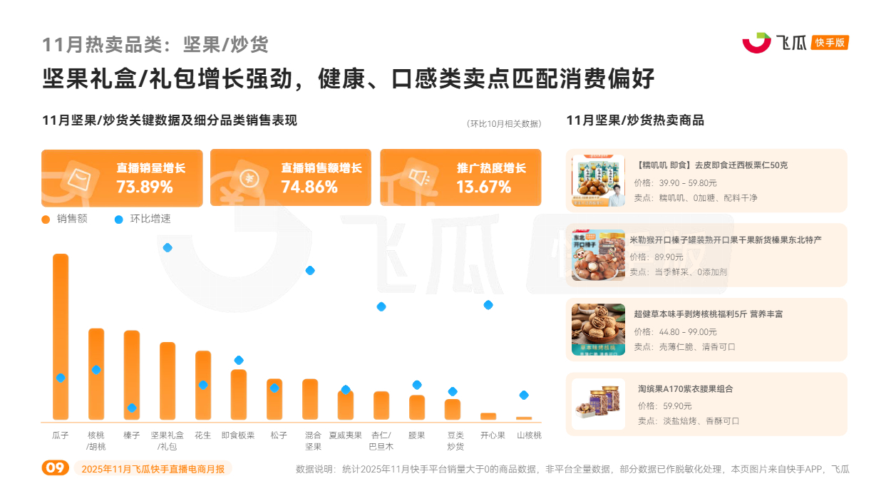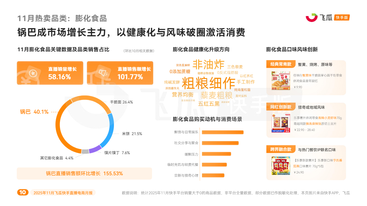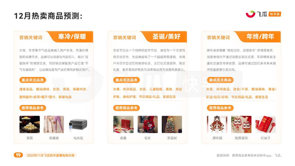 对此,飞瓜数据快手版出品《2025年11月飞瓜快手直播电商月报》,回顾11月快手电商营销趋势及热卖品类,为品牌商家接下来生意增长提供参考。