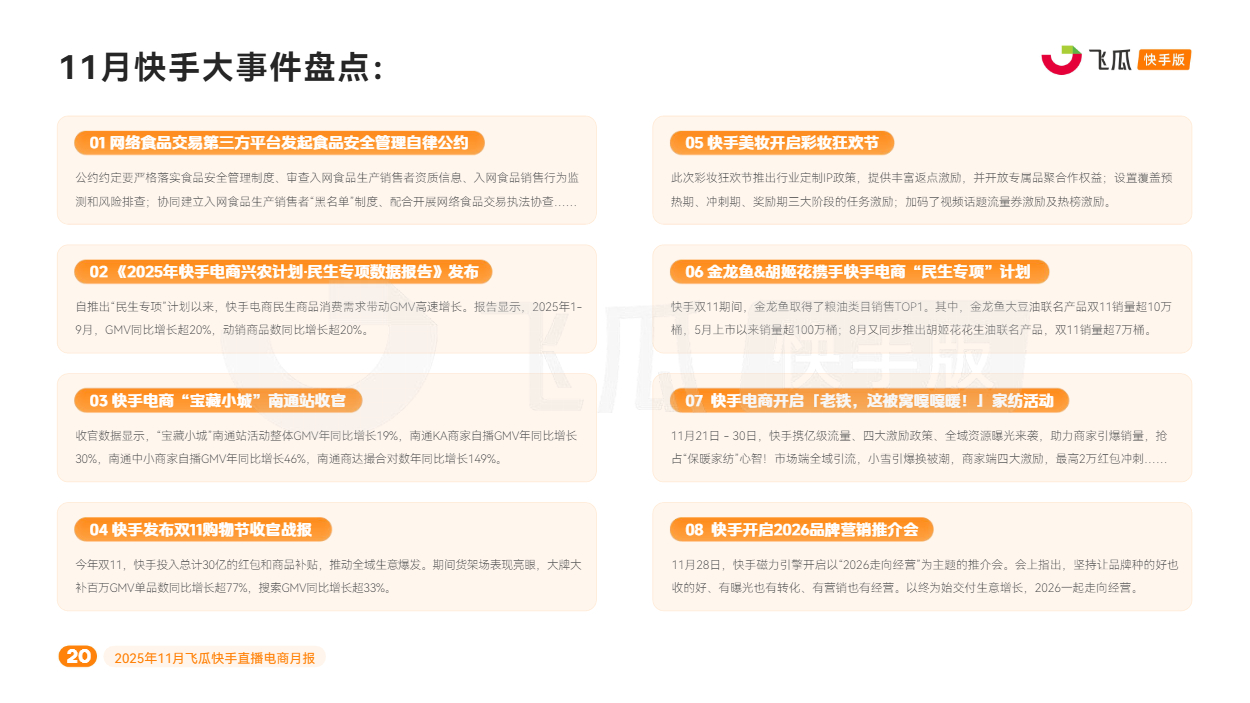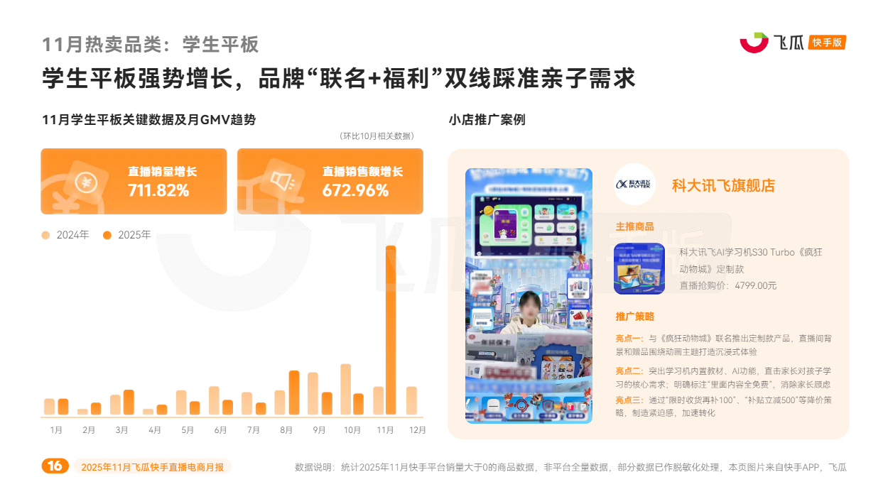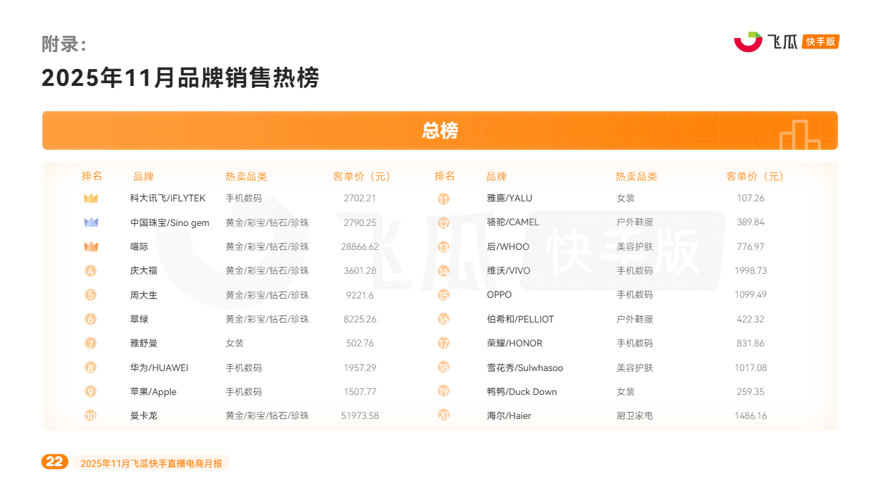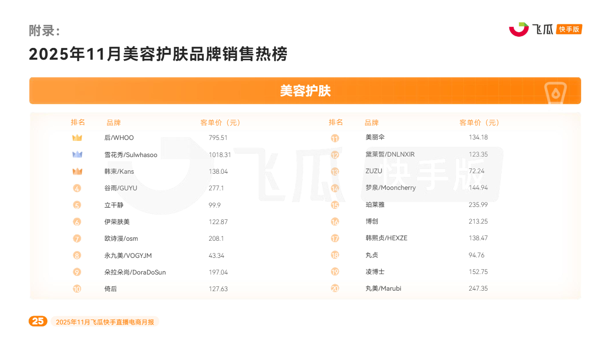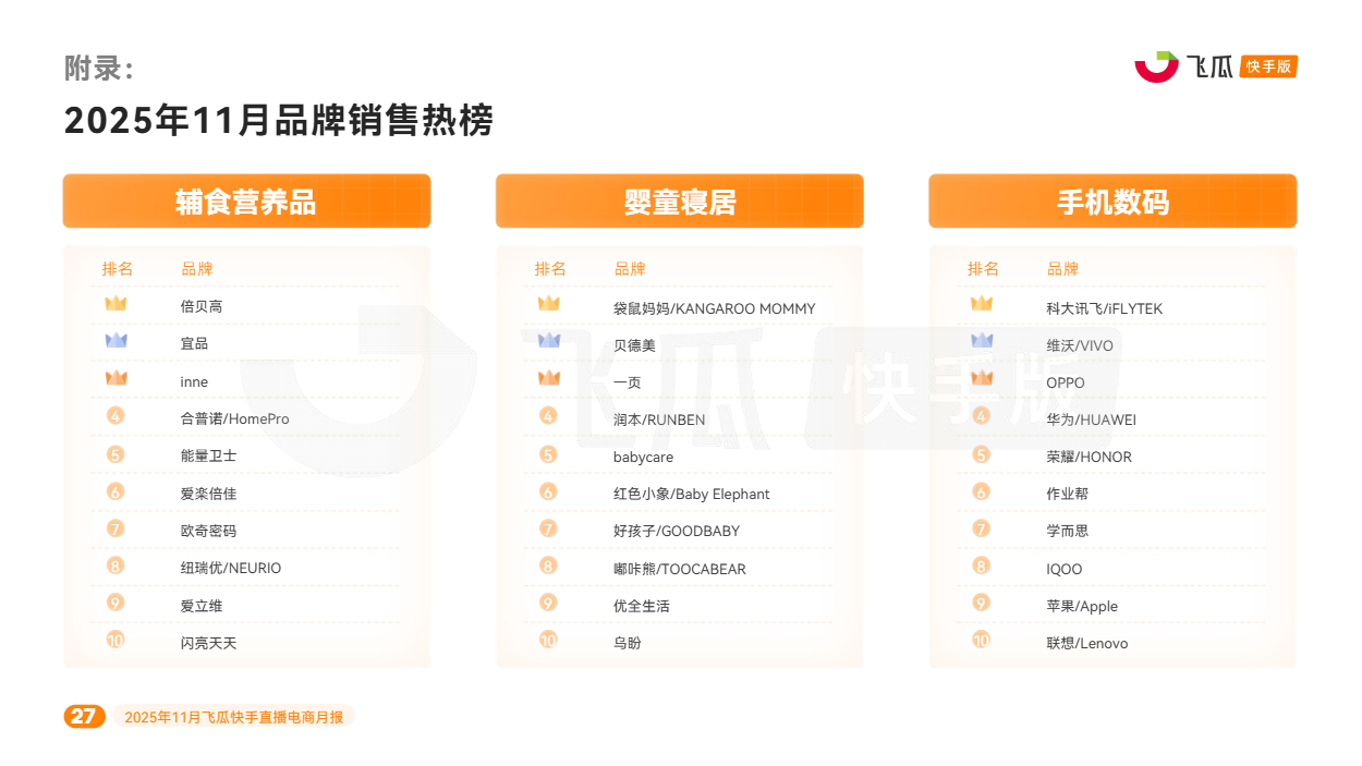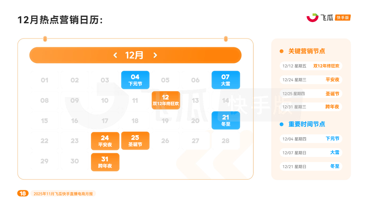 对此,飞瓜数据快手版出品《2025年11月飞瓜快手直播电商月报》,回顾11月快手电商营销趋势及热卖品类,为品牌商家接下来生意增长提供参考。