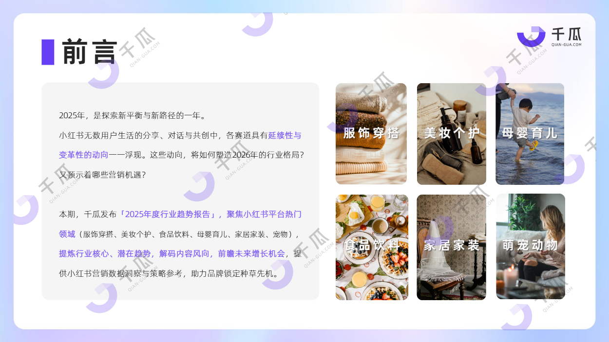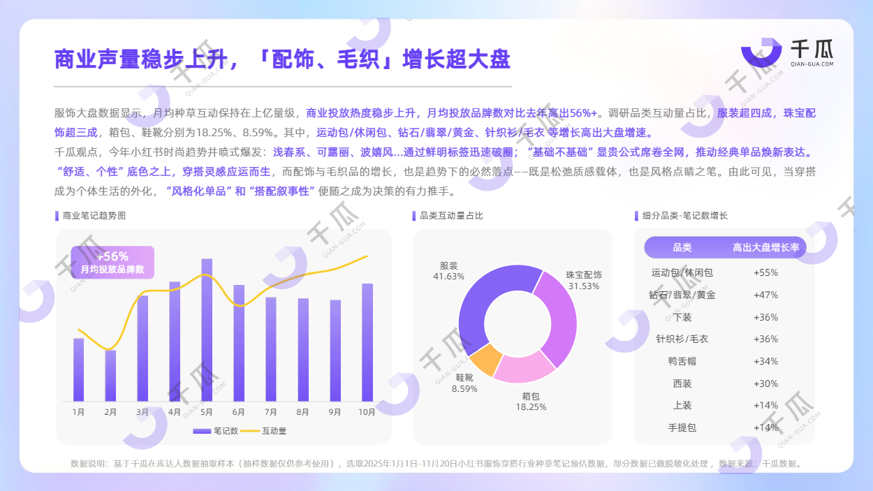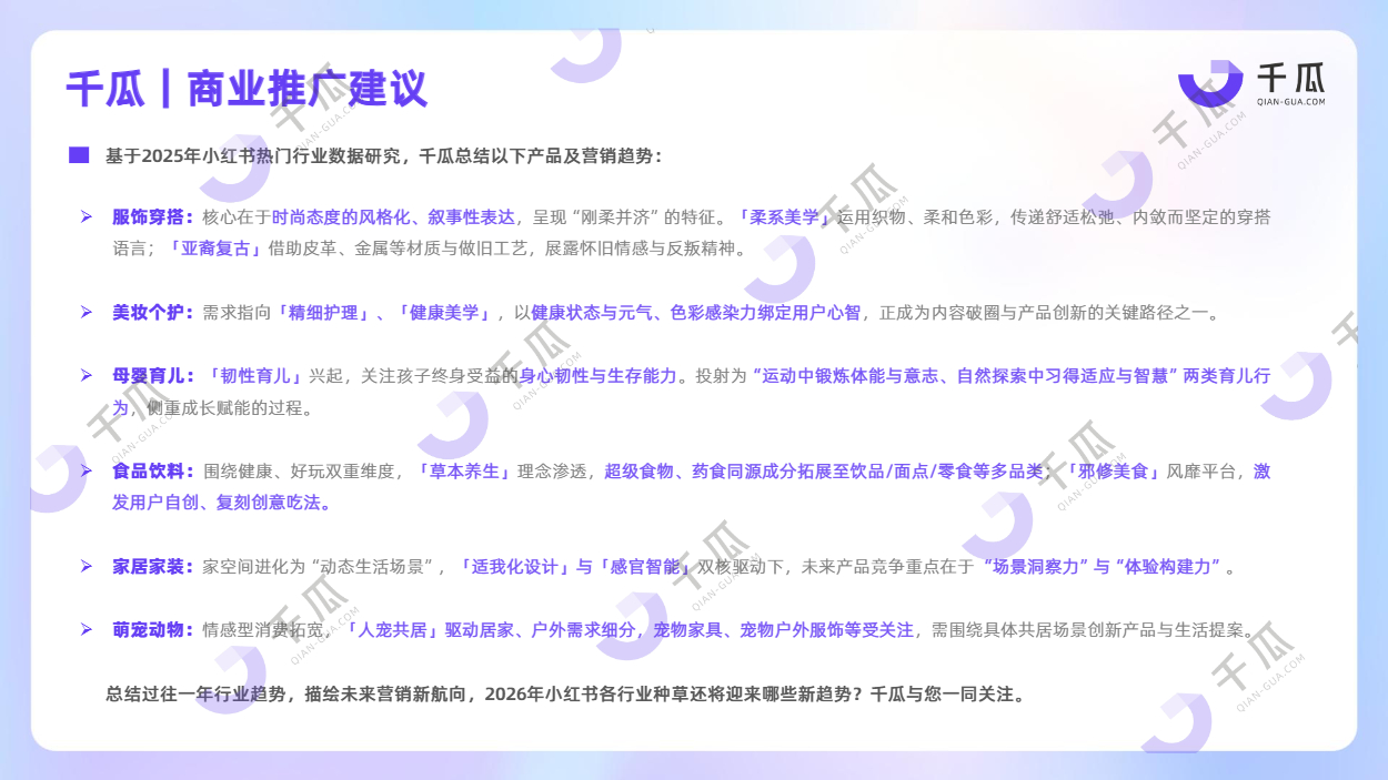 千瓜发布《2025年度热门行业数据报告(小红书平台)》,聚焦热门领域(服饰、美护、食饮、母婴育儿、家居家装、宠物),提炼行业核心、潜在趋势,解码内容风向,前瞻未来增长机会,提供营销数据洞察与策略参考,助力锁定种草先机。