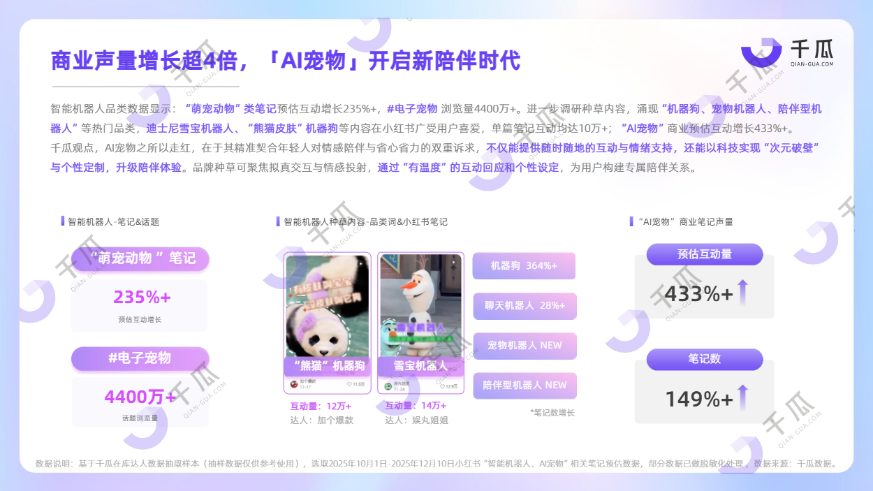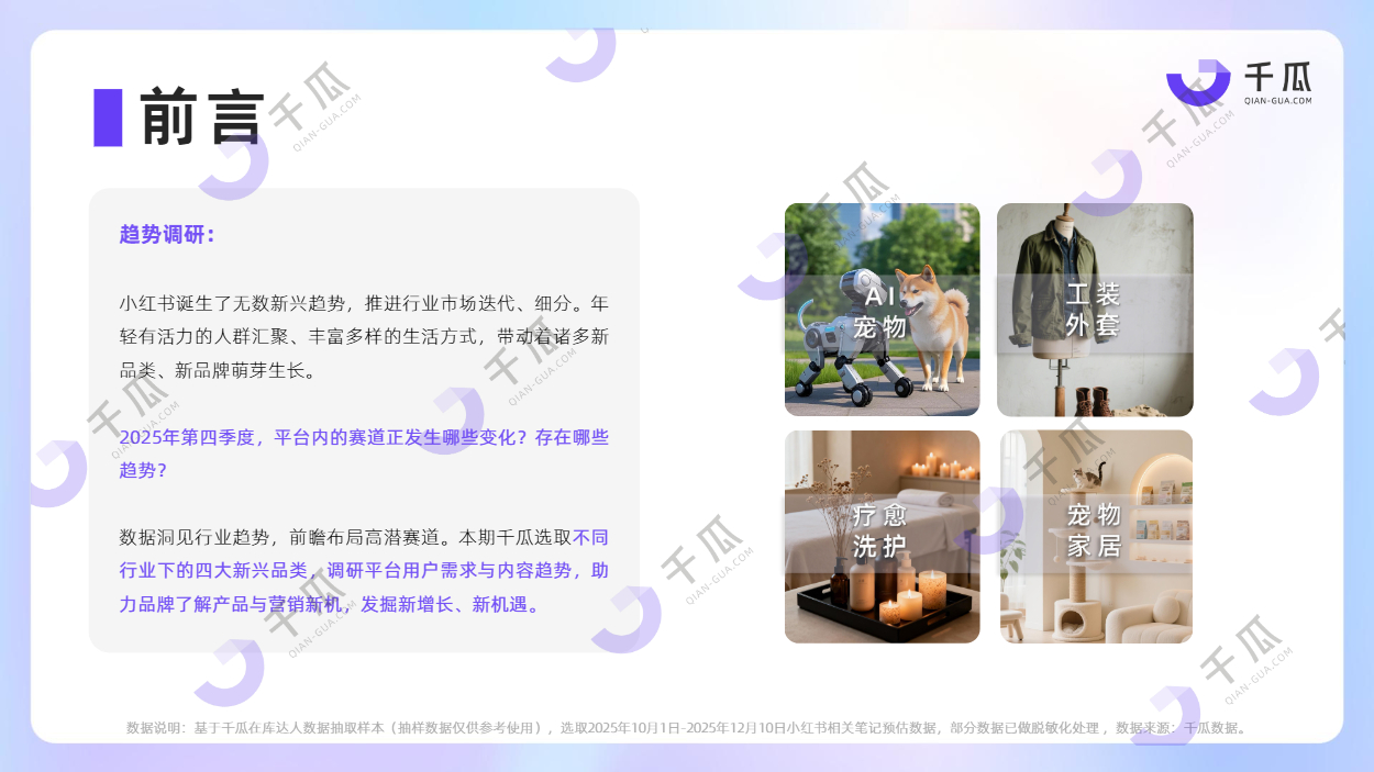 本期,千瓜发布《千瓜2025年第四季度「新兴品类」简报(小红书平台)》,聚焦不同行业下的四大新兴品类,调研平台用户需求与内容趋势,助力品牌了解产品与营销新机,发掘新增长、新机遇。