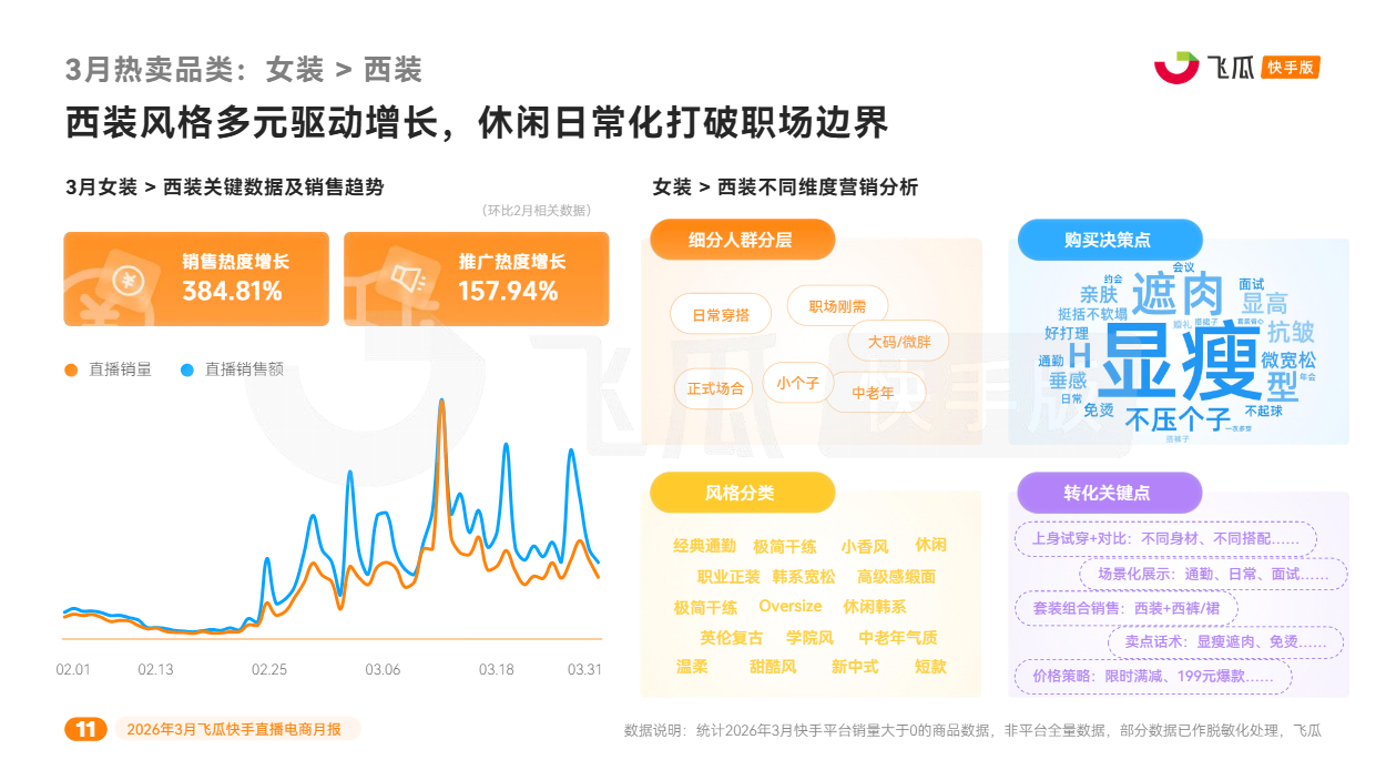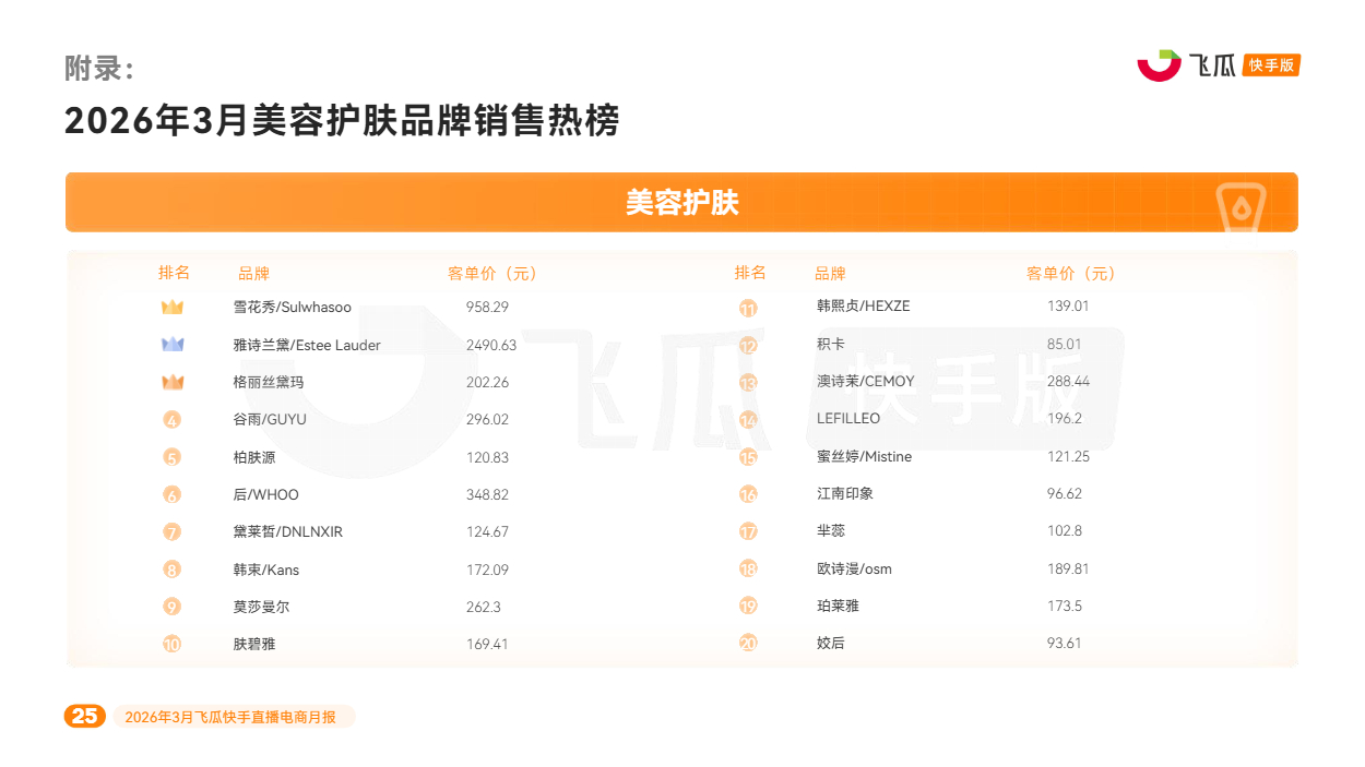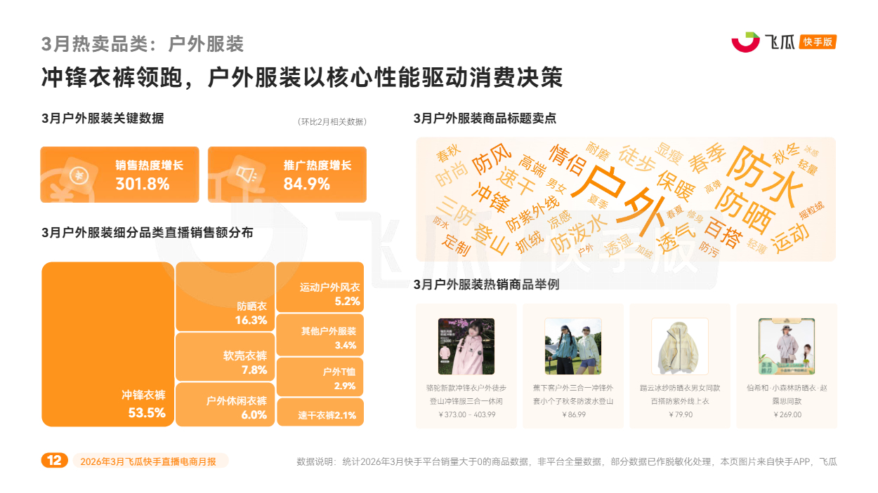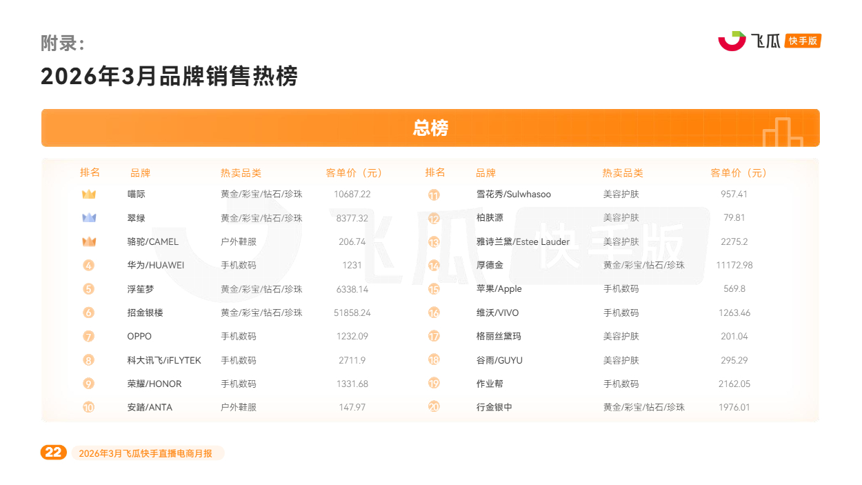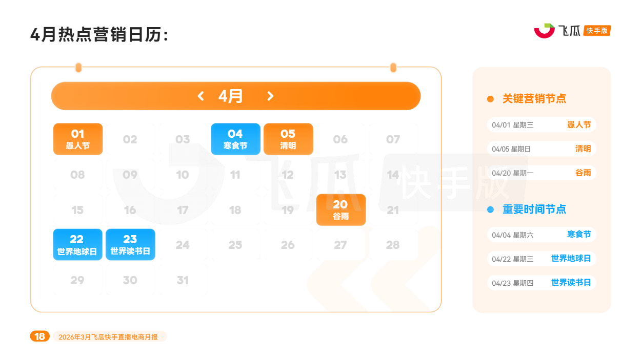对此,飞瓜数据快手版出品《2026年3月飞瓜快手直播电商月报》,回顾3月快手电商营销趋势及热卖品类,助力品牌商家洞察市场、挖掘增长机遇。