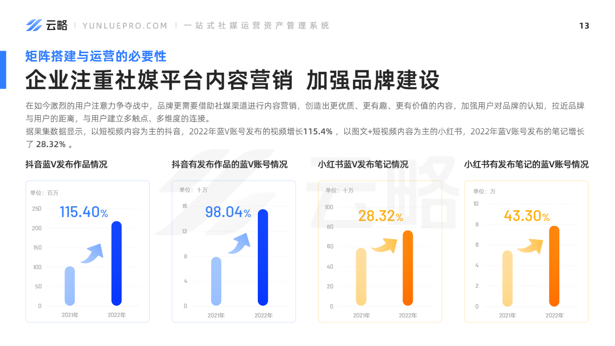然而面对线上流量红利的逐渐消退、获客成本的不断上涨,品牌如何通过布局矩阵,完成渠道建设,实现全域经营、业绩增长?从流量到留量,如何深挖用户价值,实现高效转化?面对海量的新媒体运营资产,如何科学、智能、精细化管控,赋能数字化转型、提升运营效率、降低运营成本,从而实现品牌企业社媒运营的持续发展?