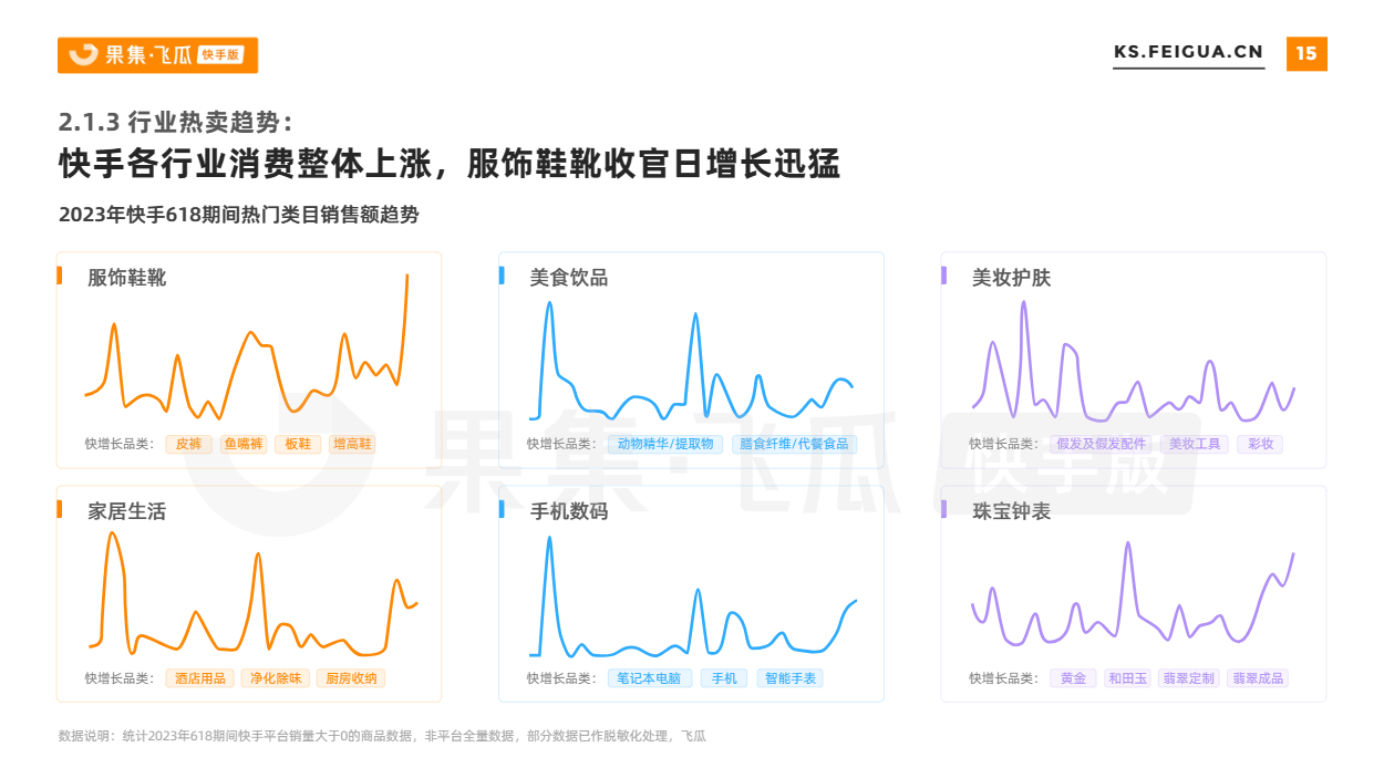 对此,飞瓜数据快手版出品的《2023年快手618购物节营销洞察报告》,回顾本次618购物节,从消费热度、品类分析、消费者洞察、品牌表现、达人案例等维度展开,提供详细的数据参考。