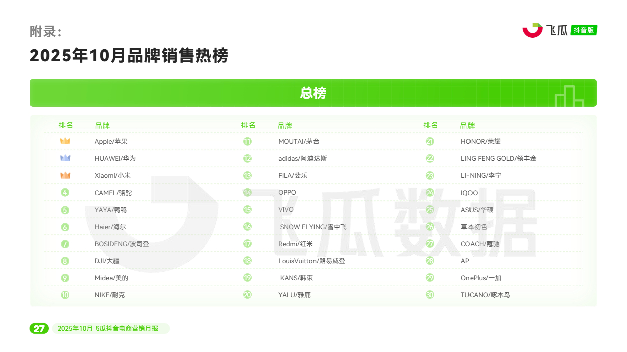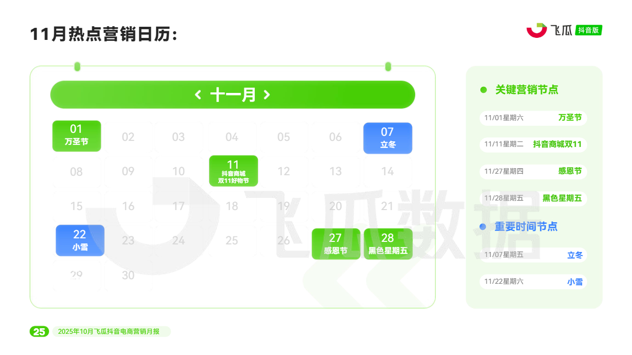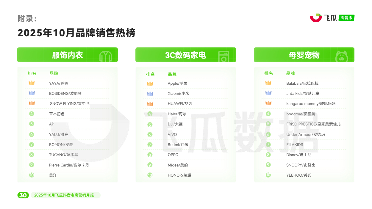 对此,飞瓜出品《2025年10月飞瓜抖音电商营销月报》,带你回顾本月电商重点品类的表现,一起来看看吧!
