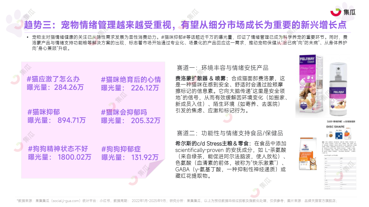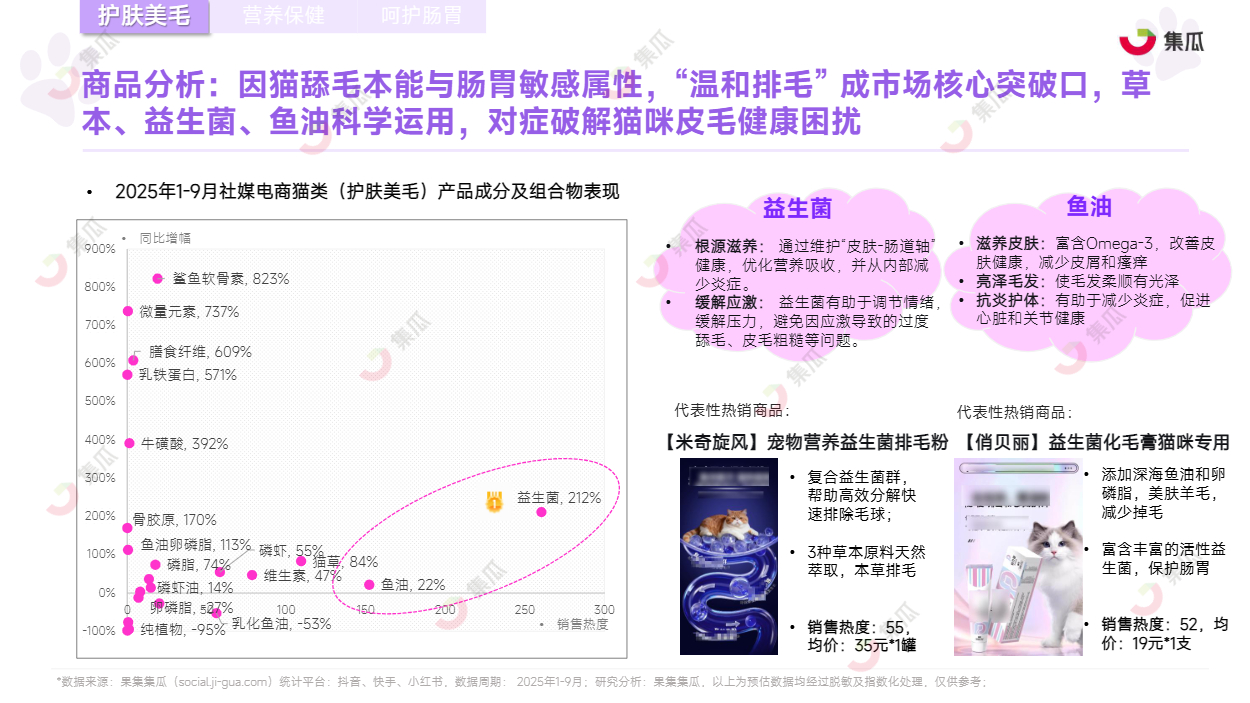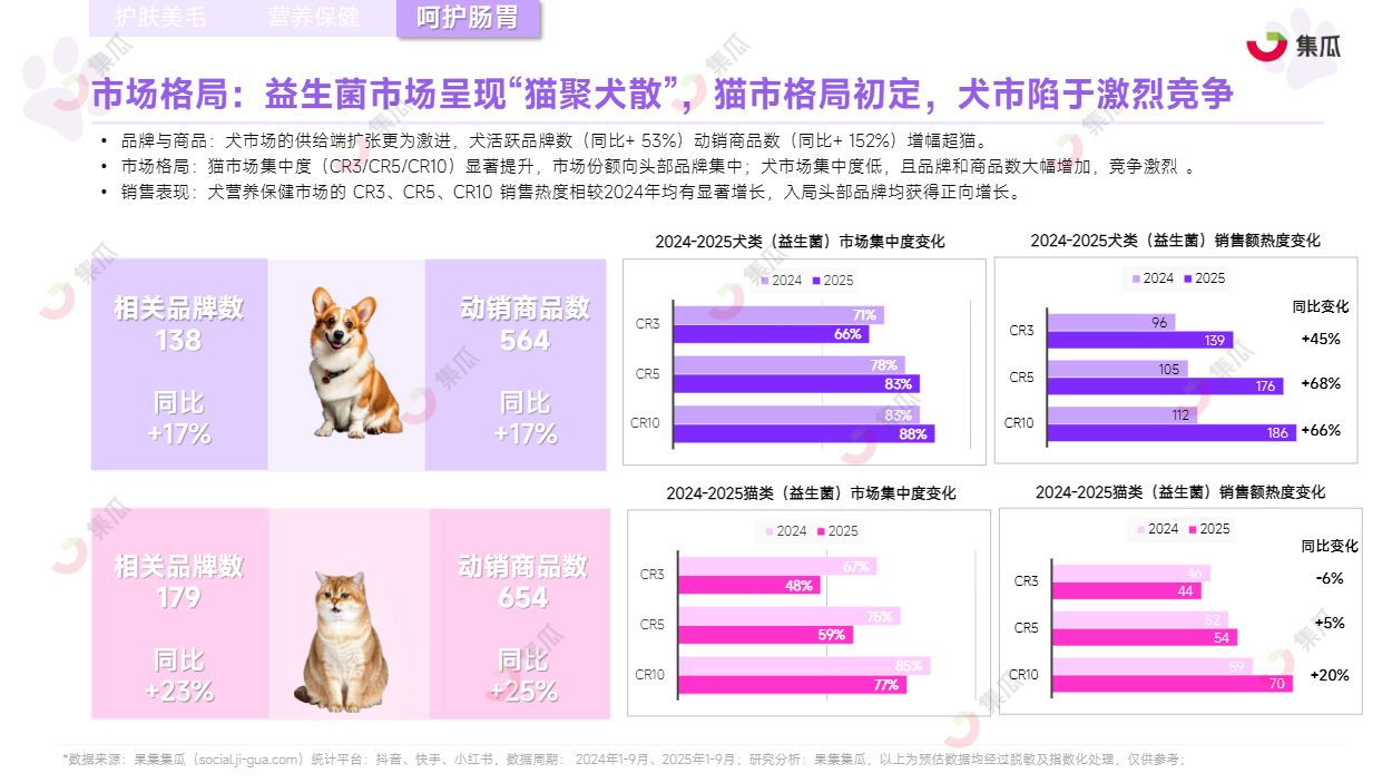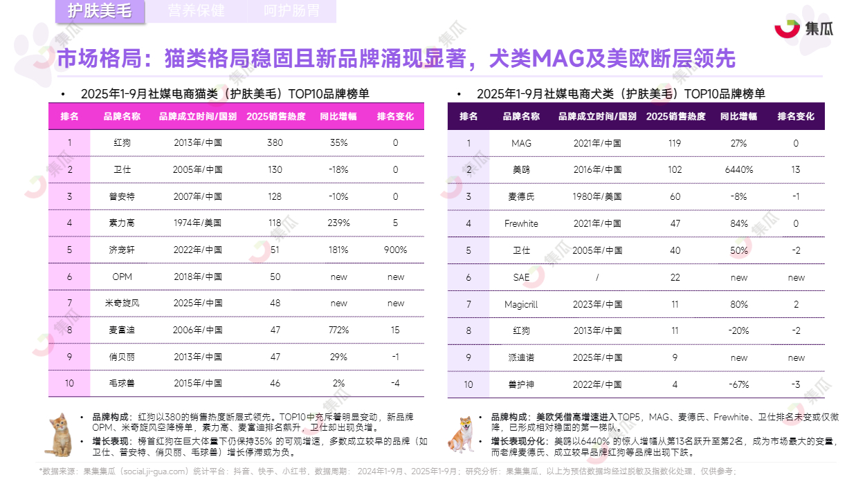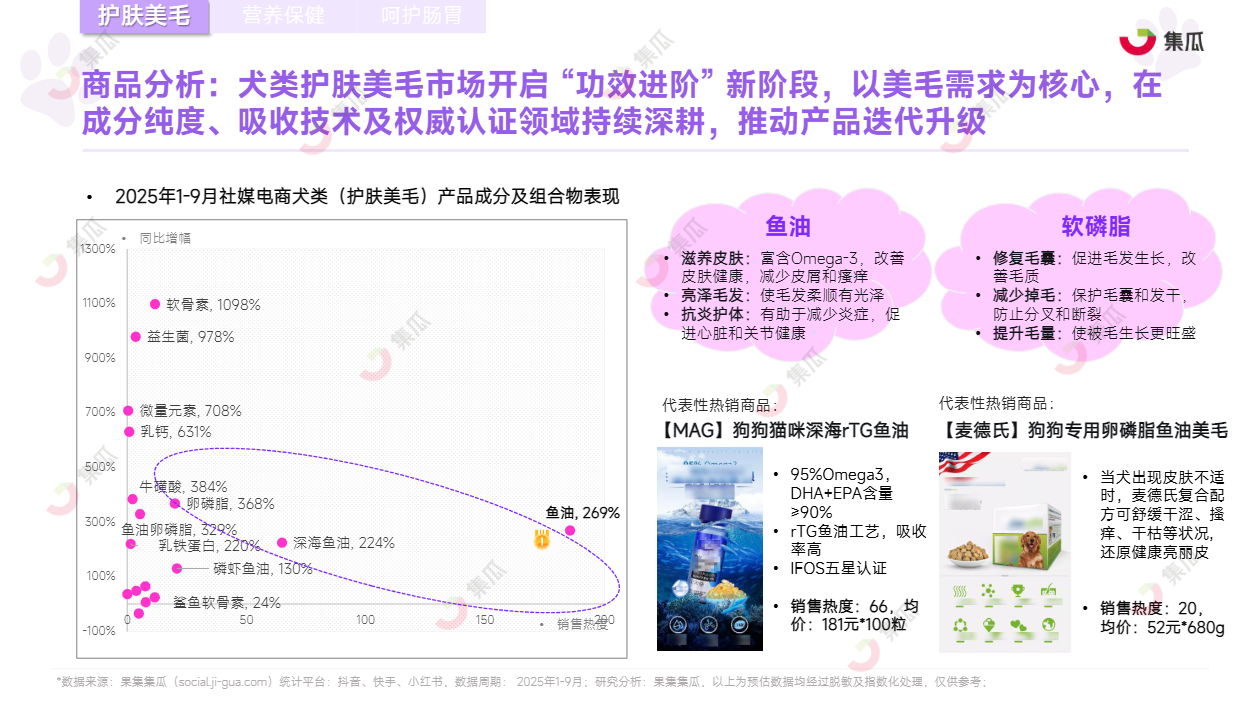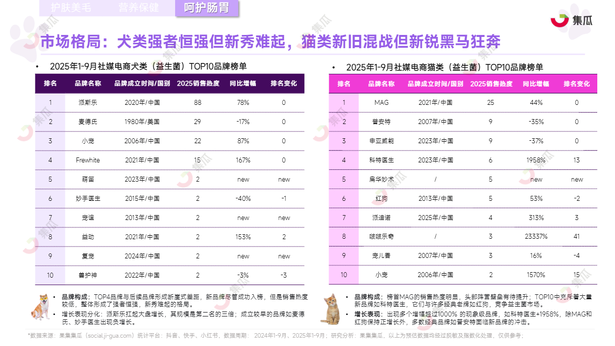 集瓜数据显示,2025年1-9月社媒电商渠道宠物保健品以97%的同比增速位列品类第二,成为宠物经济的重要增长类目。