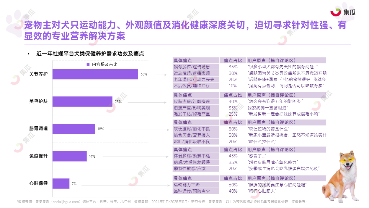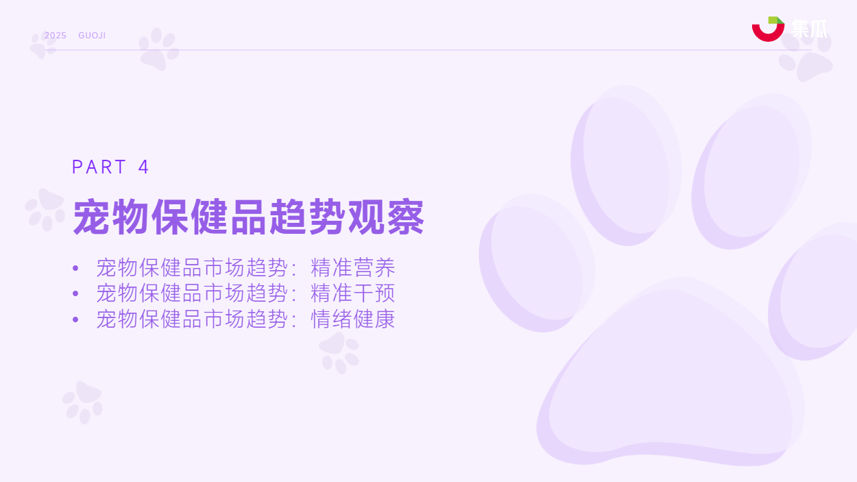集瓜数据发布《宠物保健品市场趋势报告》,将从市场态势、消费需求、细分赛道和未来趋势四大维度,拆解这场宠物健康消费的变革。