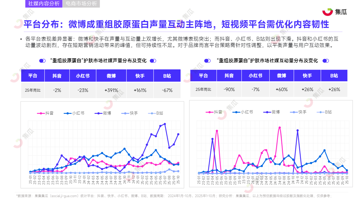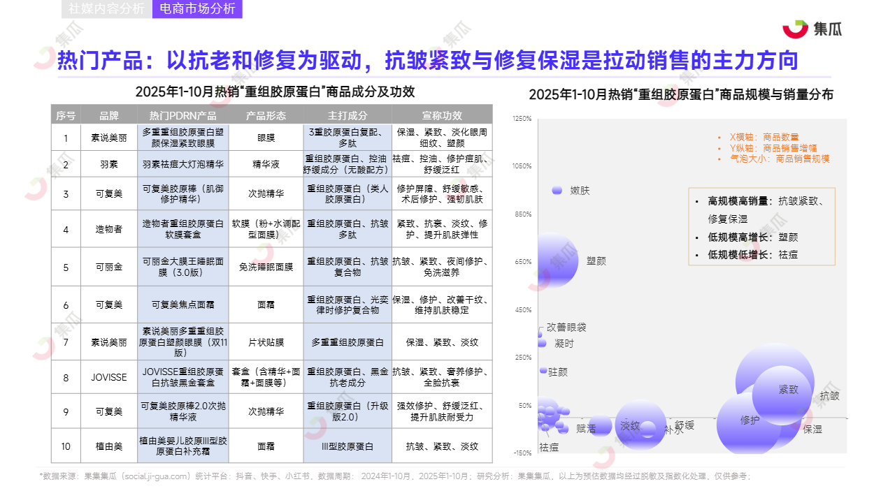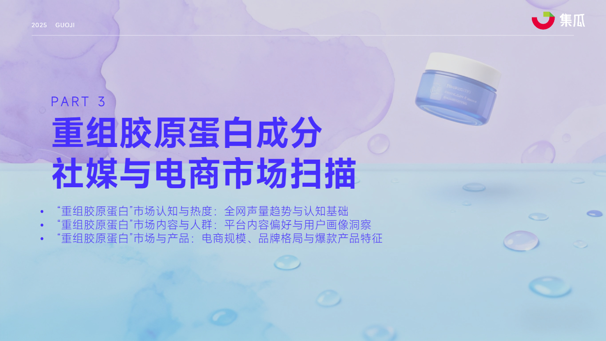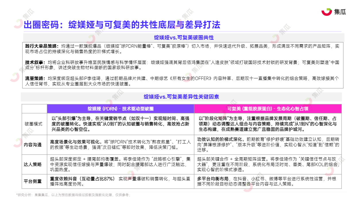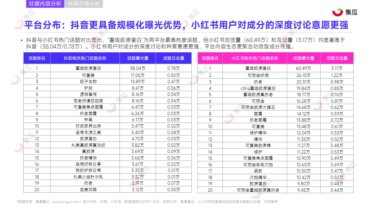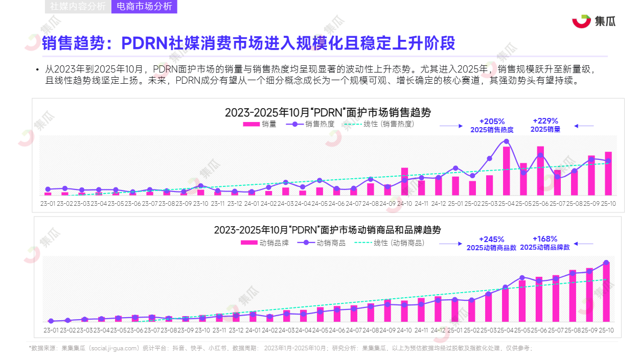 集瓜数据发布《从医用到护肤:解码PDRN与重组胶原蛋白品牌出圈密码》基于抖音、快手、小红书等五大平台的深度报告,解锁医用成分破圈逻辑,看懂爆款品牌的增长密码。