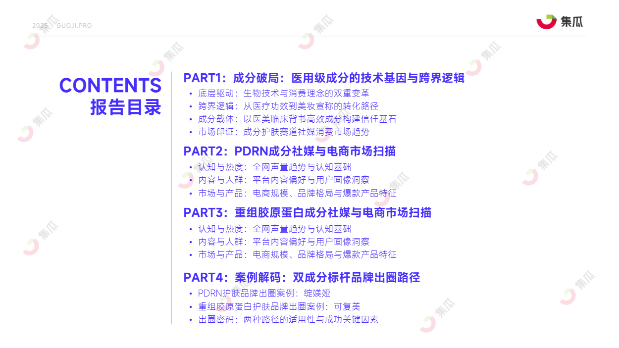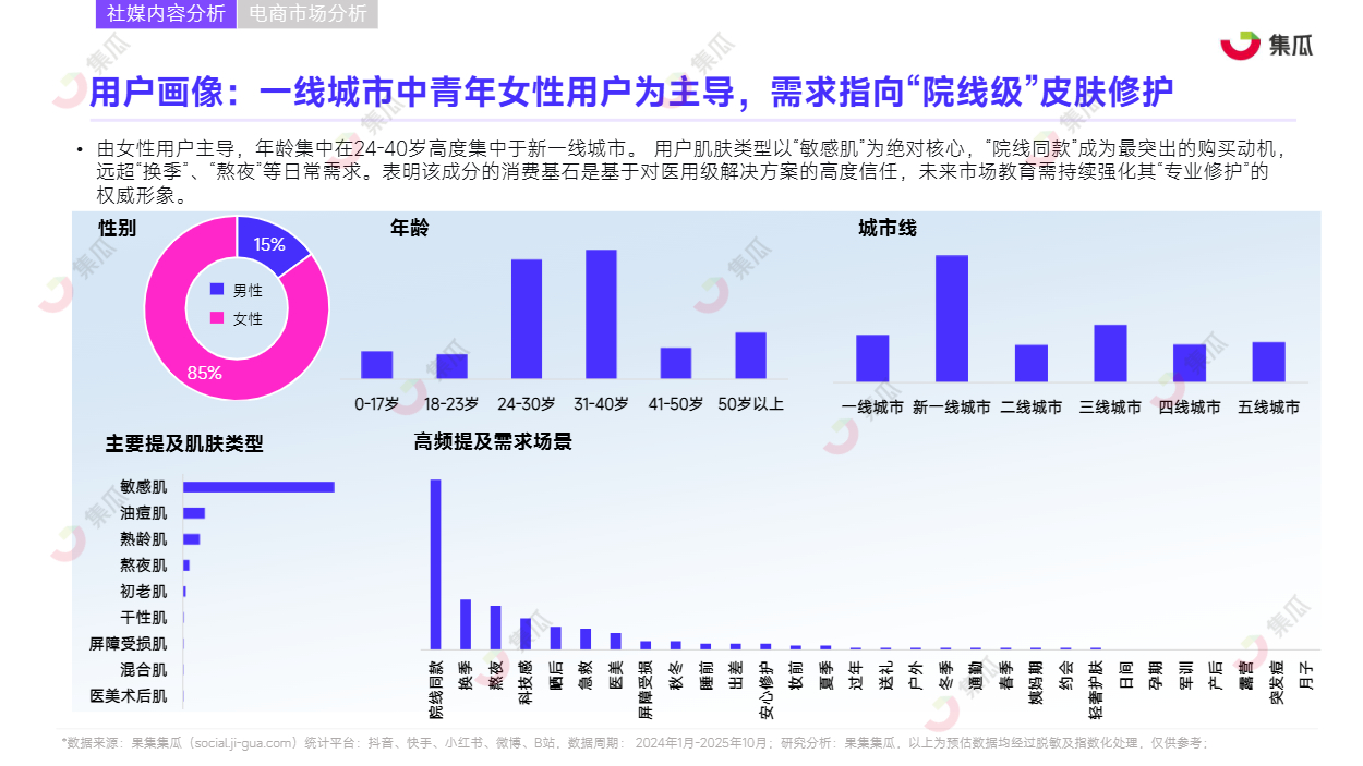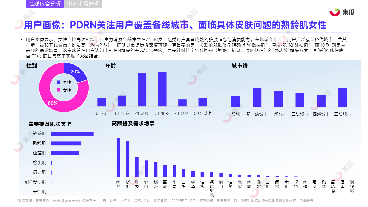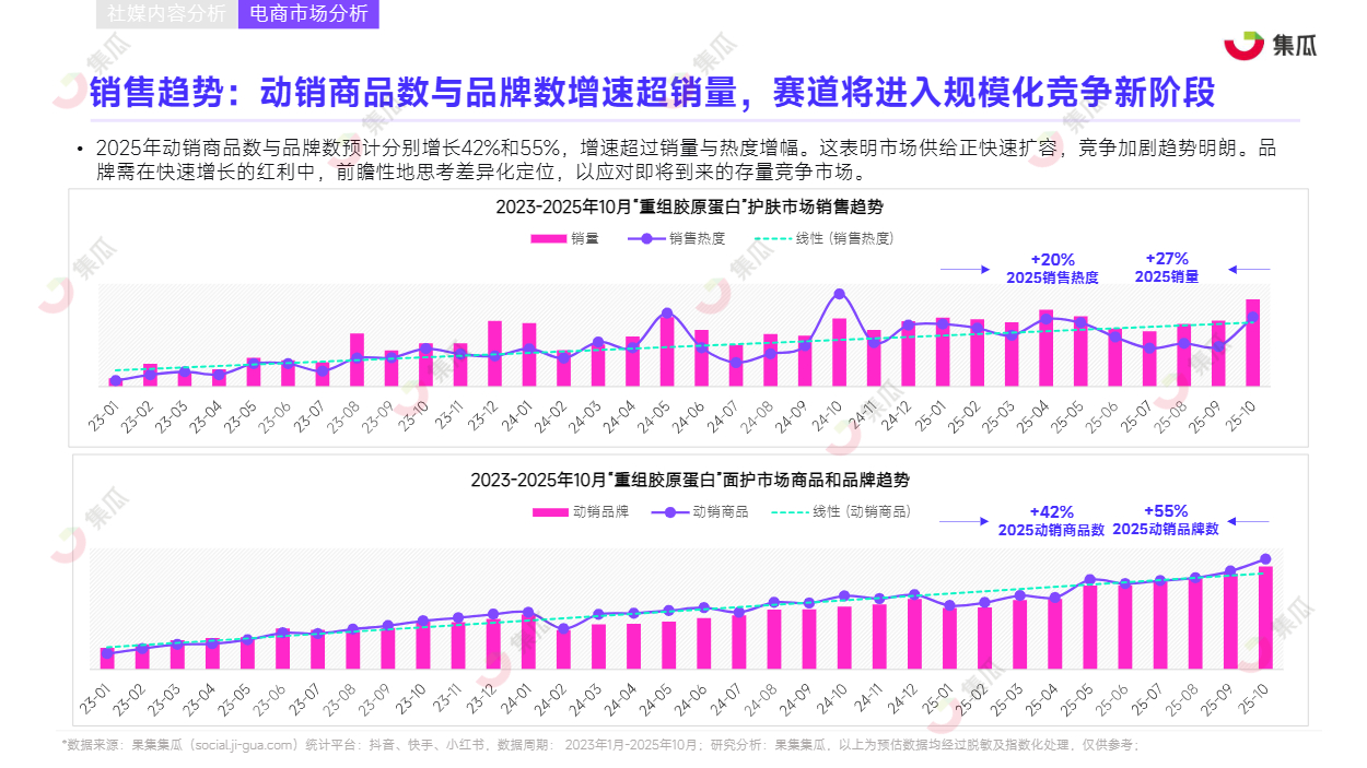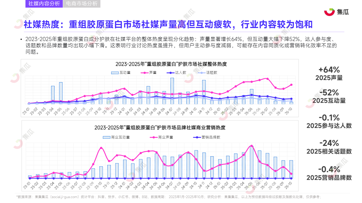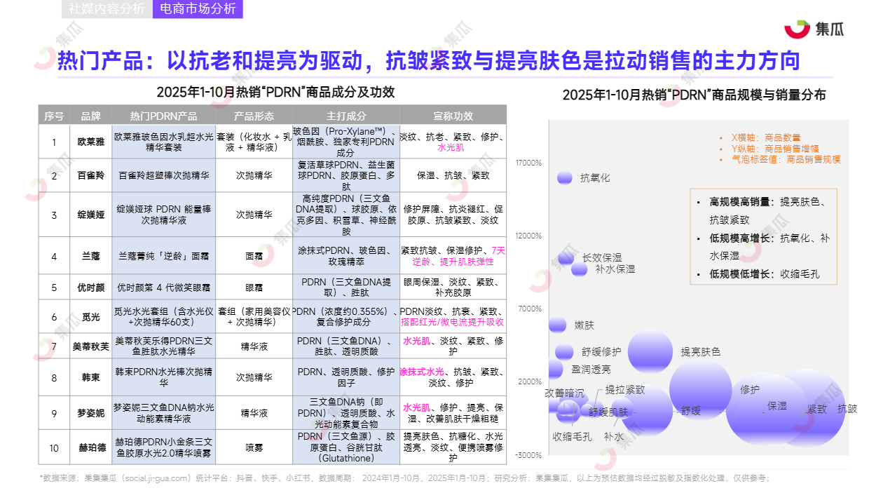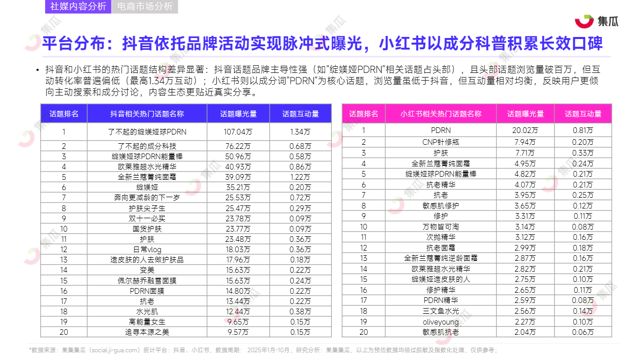 集瓜数据发布《从医用到护肤:解码PDRN与重组胶原蛋白品牌出圈密码》基于抖音、快手、小红书等五大平台的深度报告,解锁医用成分破圈逻辑,看懂爆款品牌的增长密码。