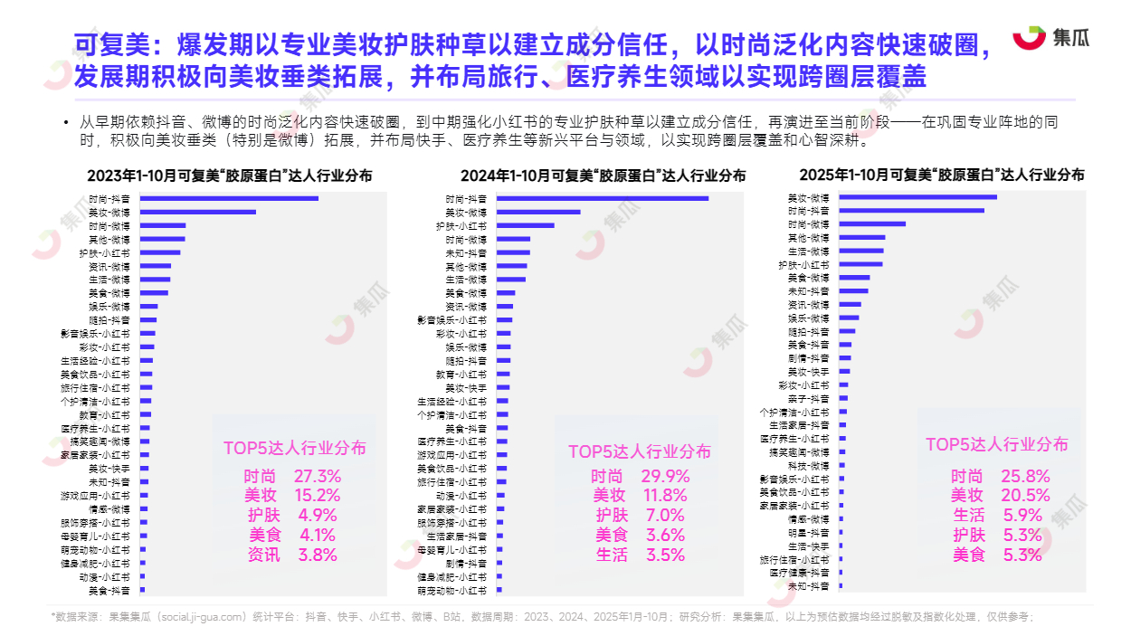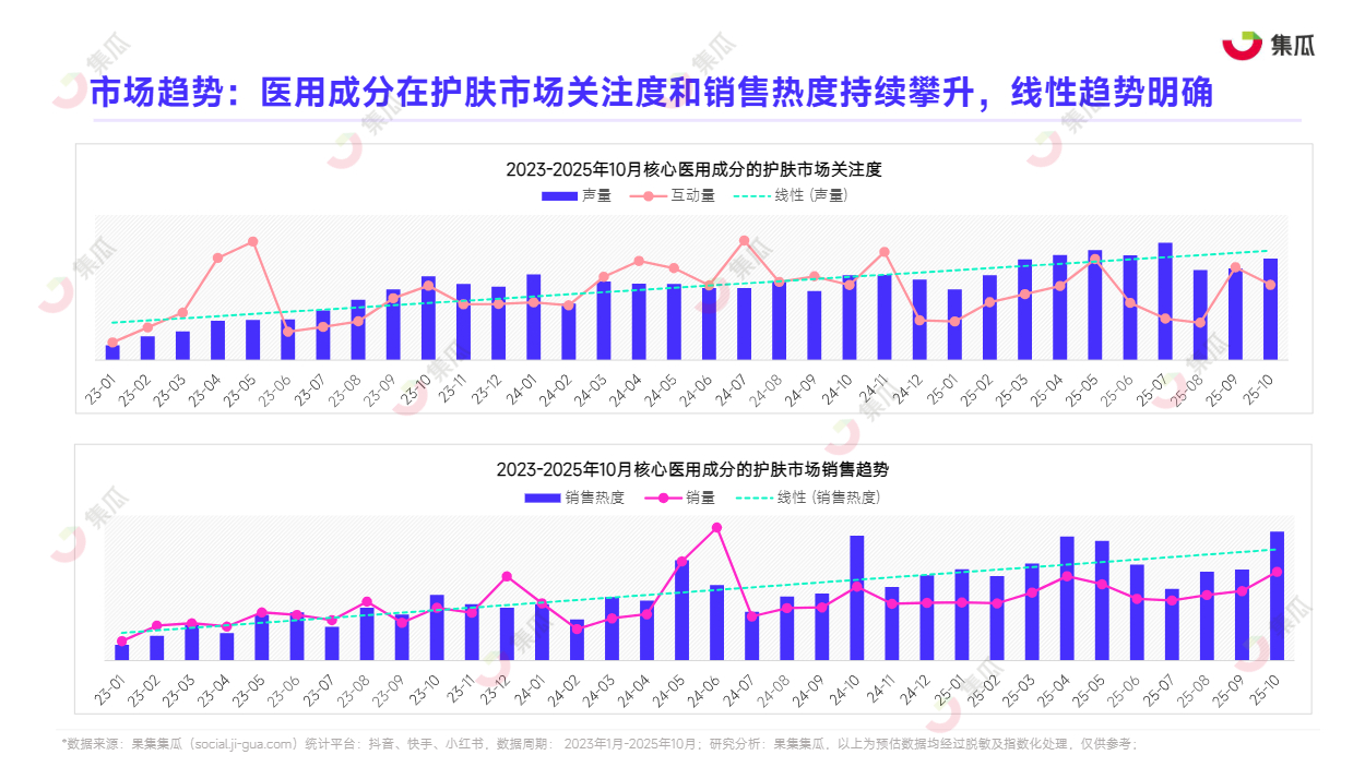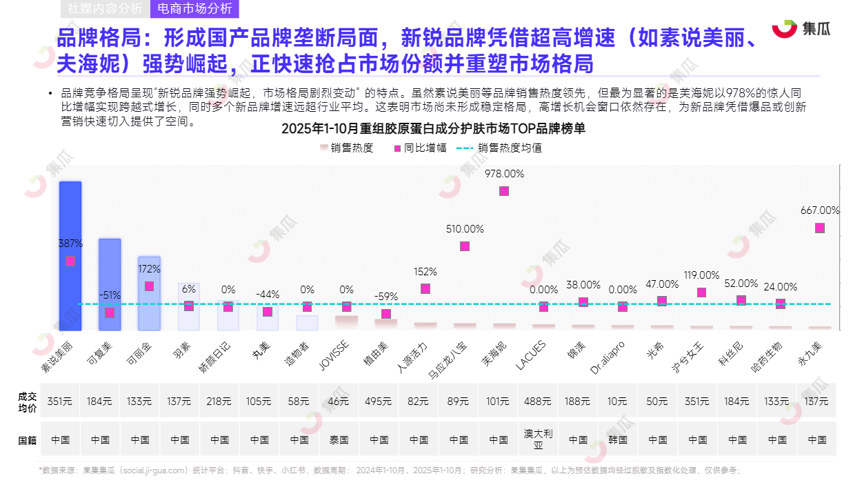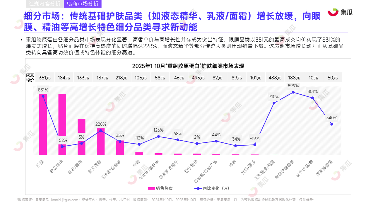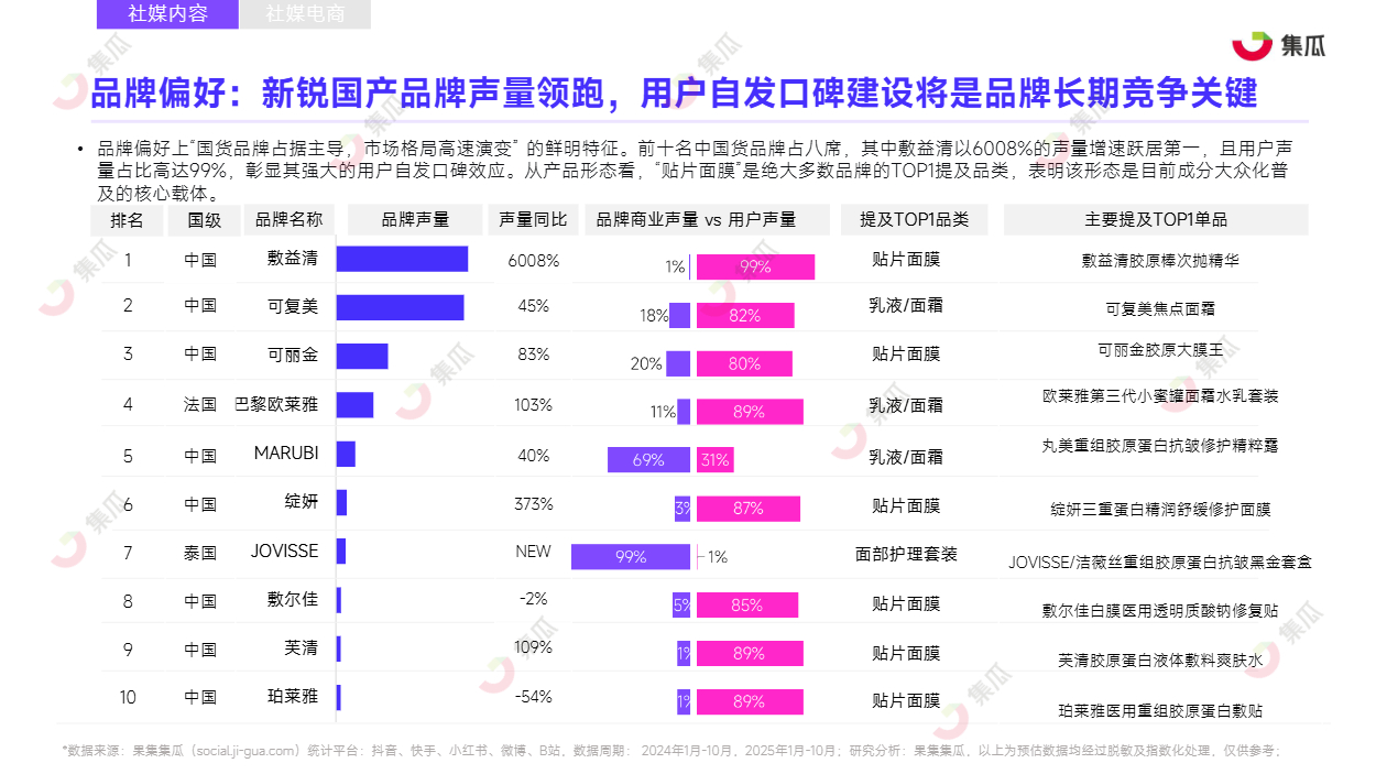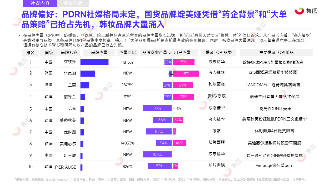 集瓜数据发布《从医用到护肤:解码PDRN与重组胶原蛋白品牌出圈密码》基于抖音、快手、小红书等五大平台的深度报告,解锁医用成分破圈逻辑,看懂爆款品牌的增长密码。