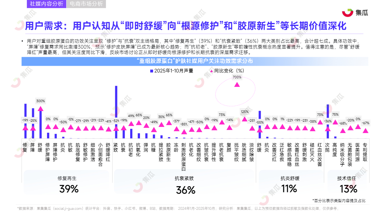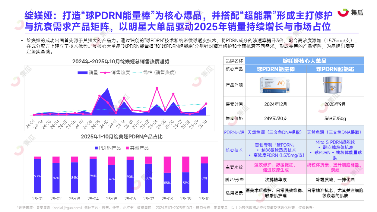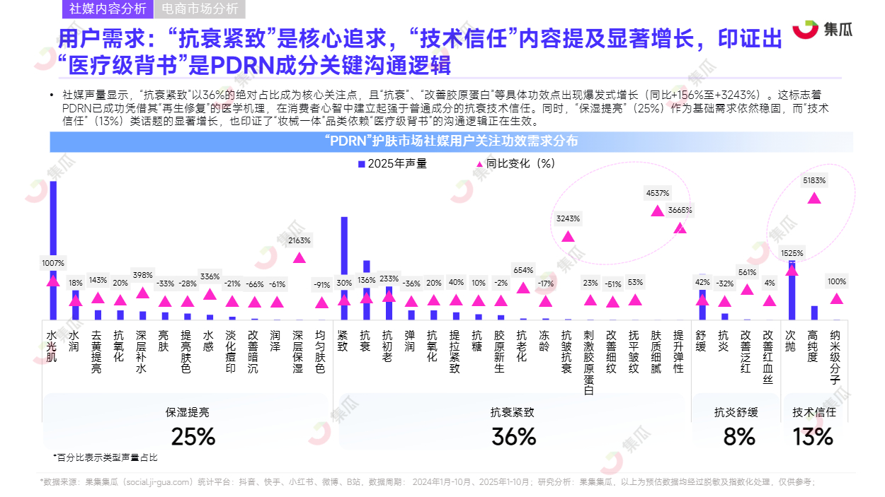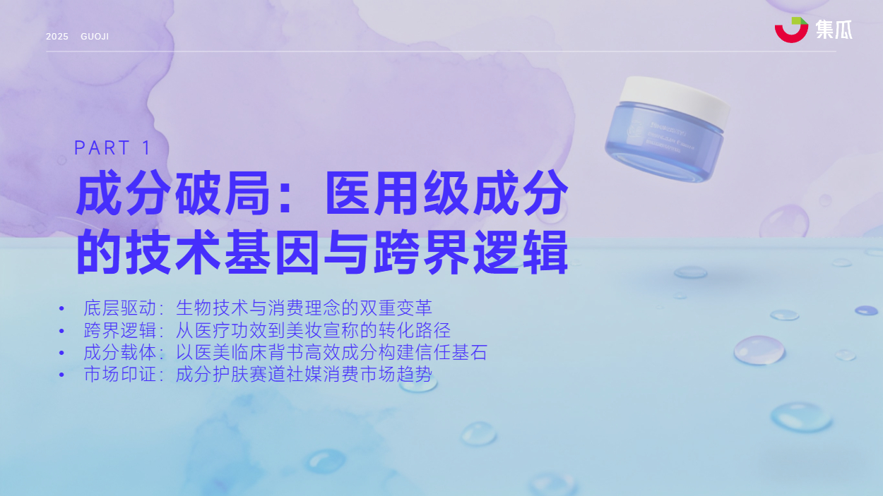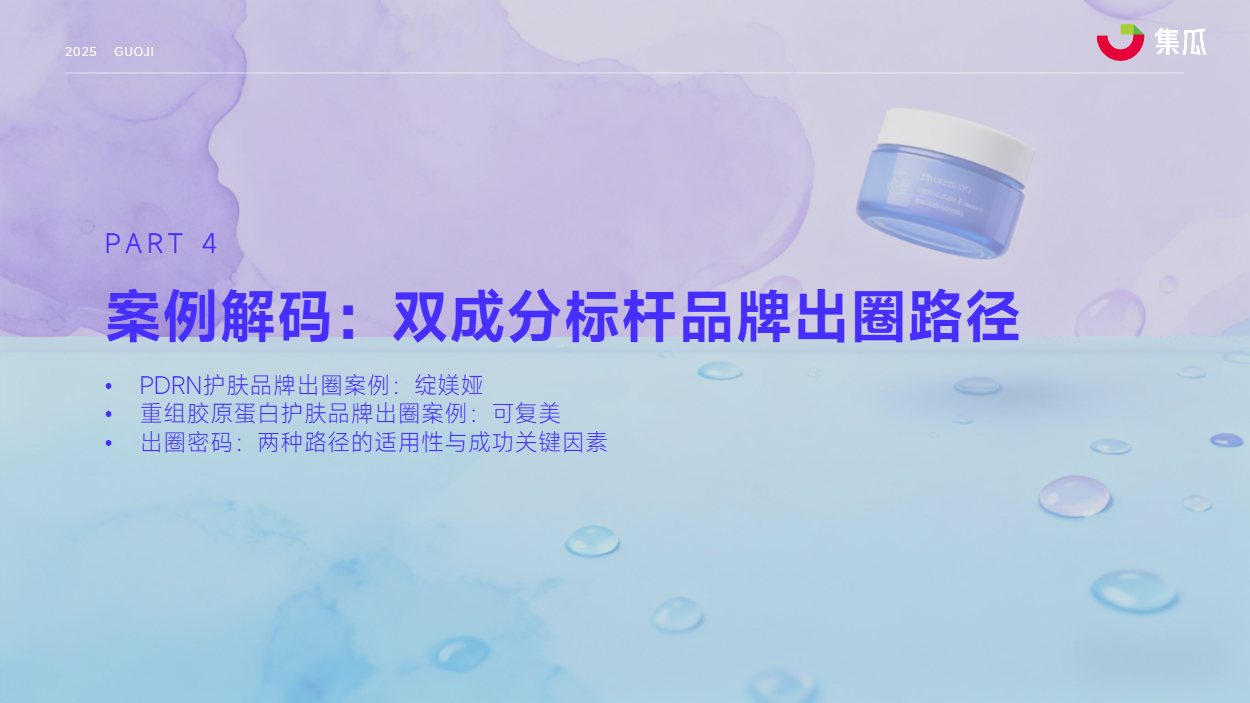 2025年PDRN与重组胶原蛋白两大医用成分强势领跑护肤赛道,从专业医美圈火到大众消费市场。