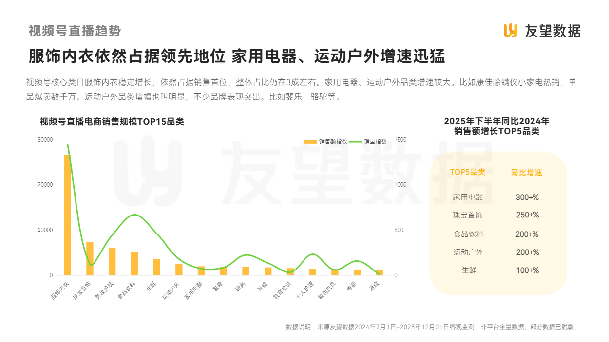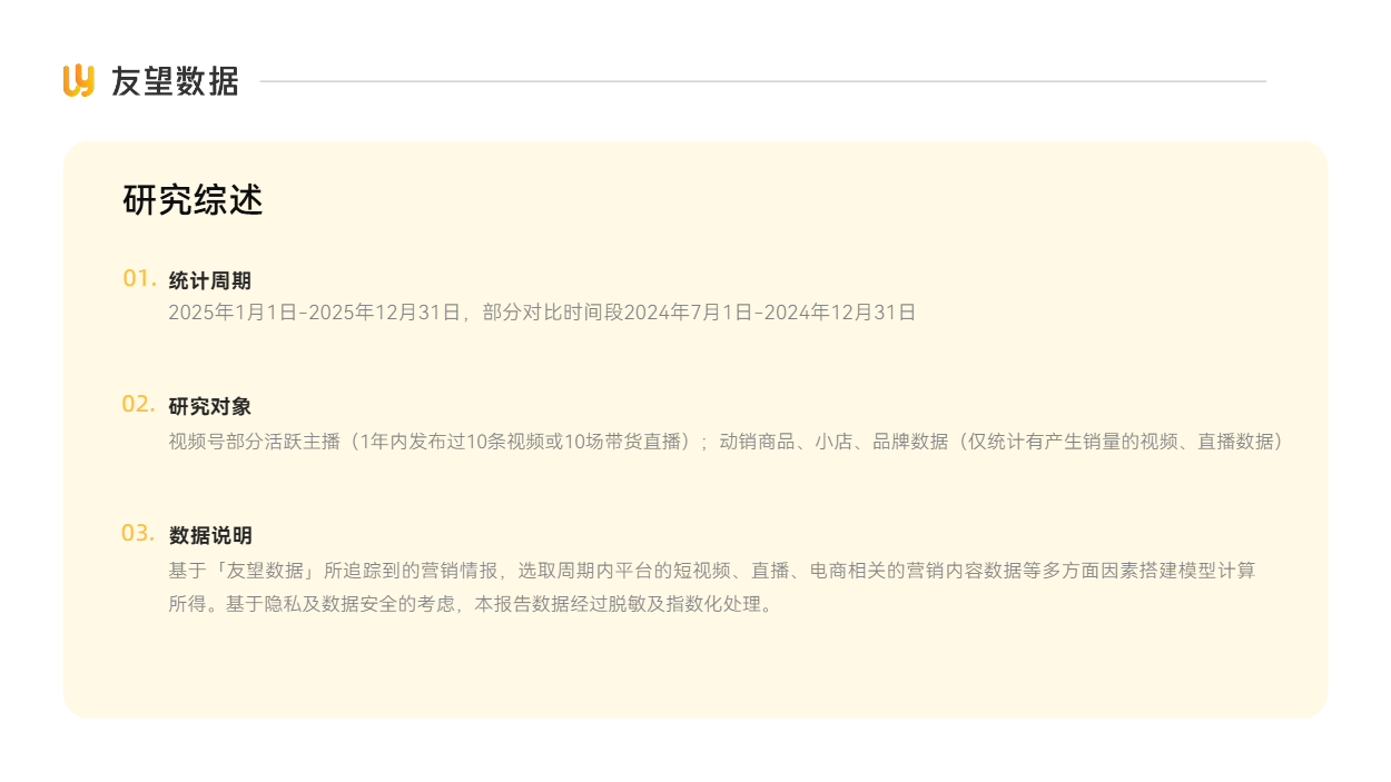 友望数据发布《2025年度视频号电商生态洞察》,从电商整体生态、重点品类分析、品牌案例分析、年度榜单等角度出发,洞悉行业新风向。