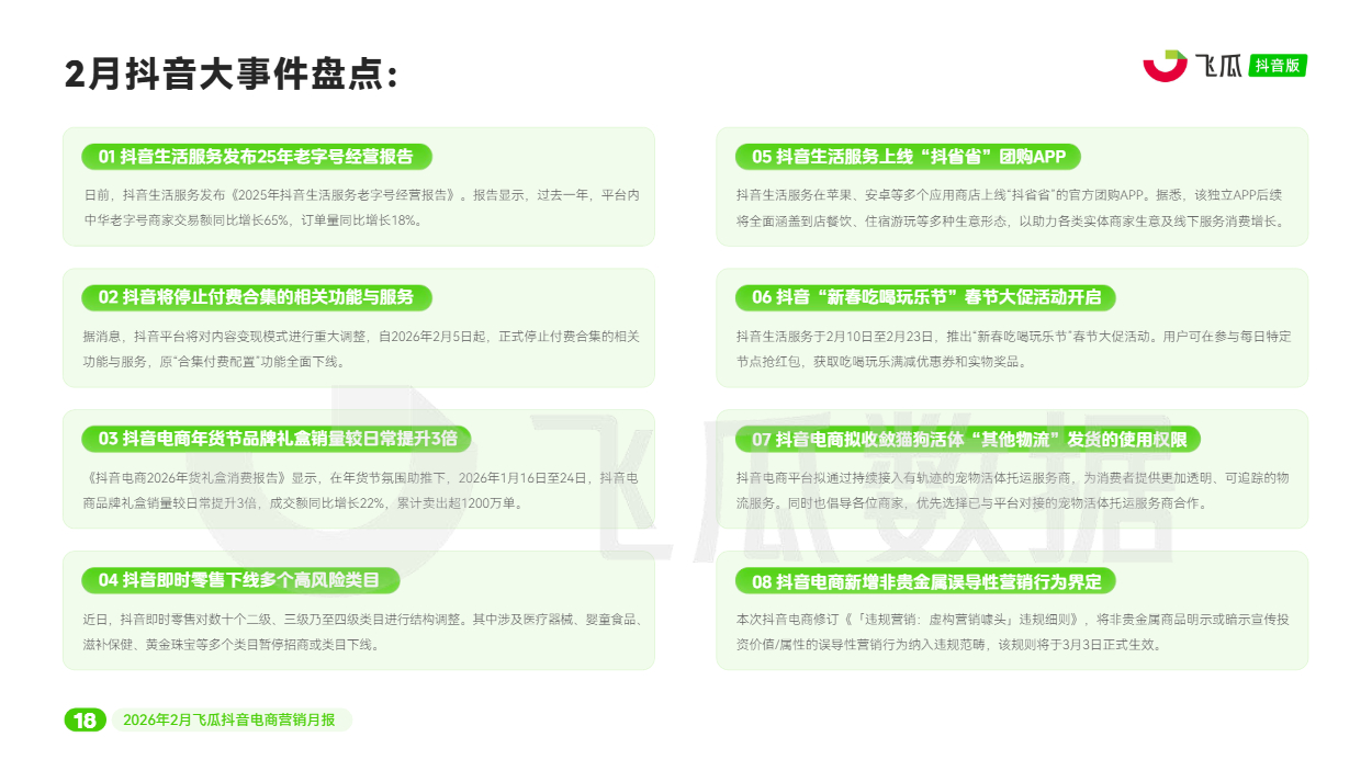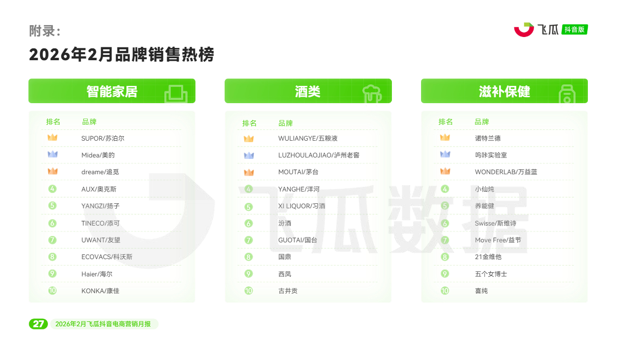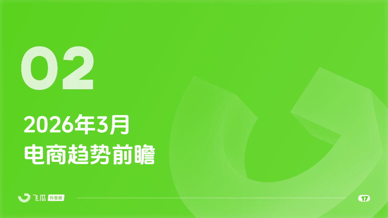 对此,飞瓜出品《2026年2月飞瓜抖音电商营销月报》,带你回顾本月电商重点品类的表现,一起来看看吧!