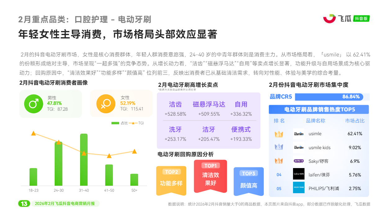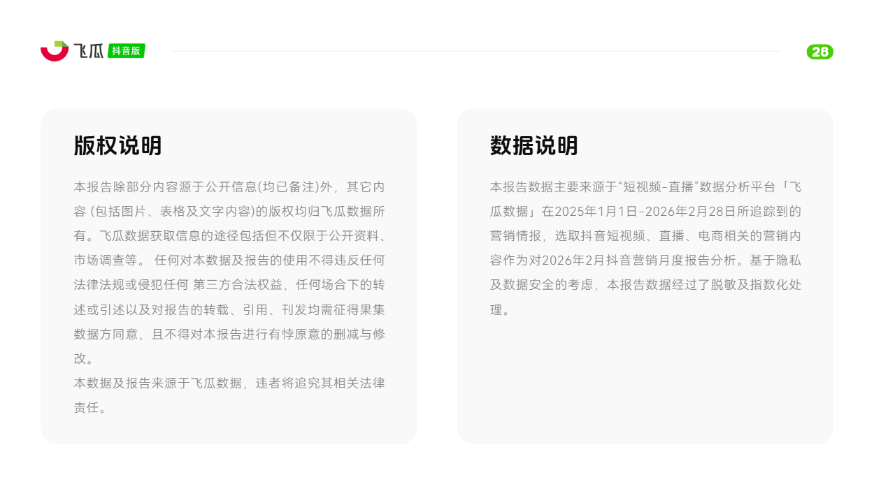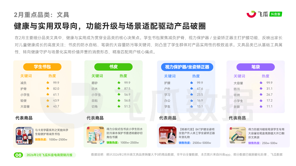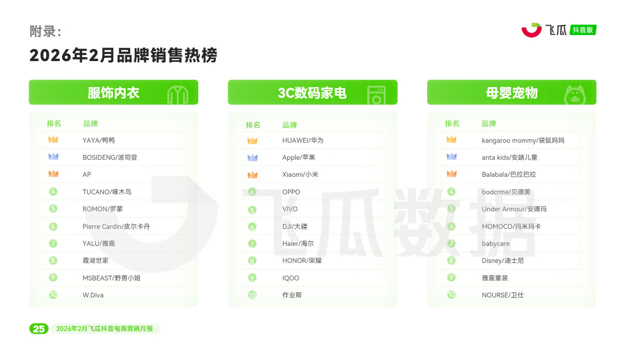 对此,飞瓜出品《2026年2月飞瓜抖音电商营销月报》,带你回顾本月电商重点品类的表现,一起来看看吧!